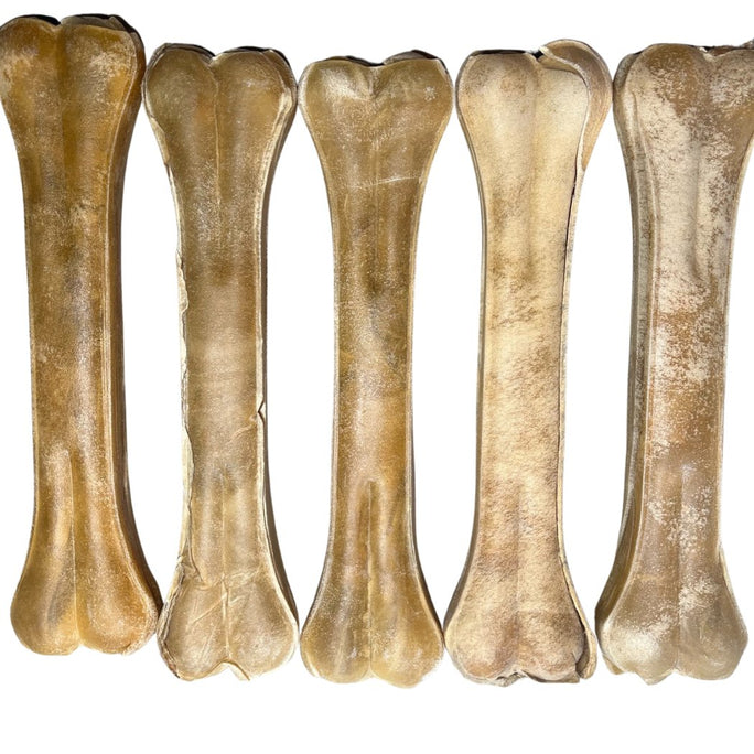 Ontdek de natuurlijke heerlijkheid van onze Runderhuid Botten van HondensnacksOnline! Gemaakt van hoogwaardige runderhuid zonder toegevoegde kunstmatige smaken of kleurstoffen, bieden deze botten jouw hond een heerlijke kauwervaring die goed is voor hun tanden en tandvlees. Perfect als beloning of bezigheid, jouw hond zal keer op keer genieten van deze smakelijke traktatie!